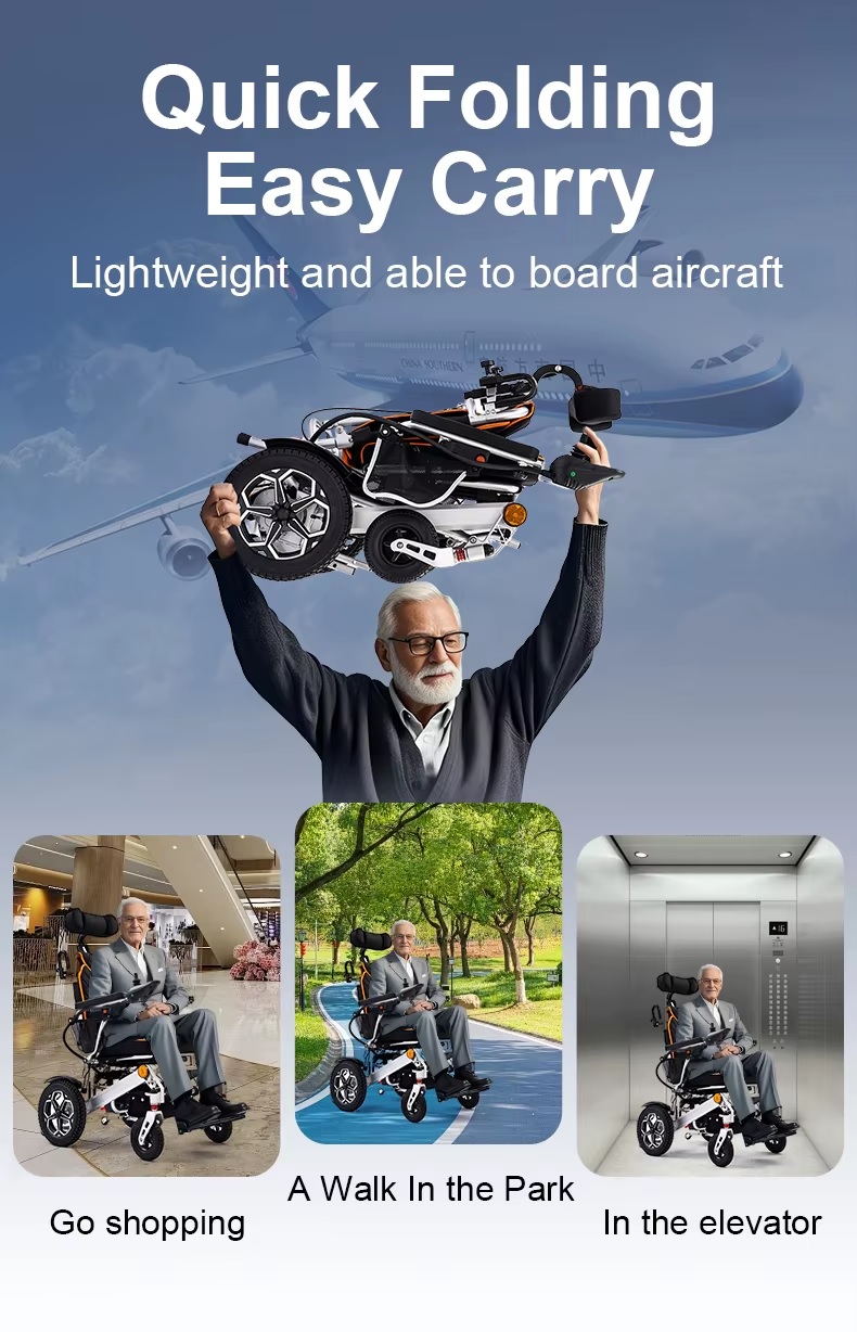 The lightest luxury on wheels . Ultra fold compact & light weight power wheelchair with lithium battery & aluminum frame for easy operations & mobility.